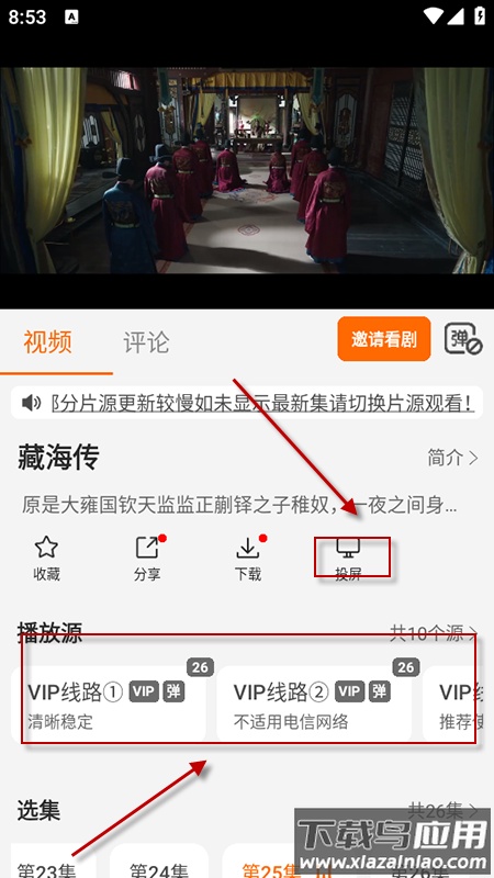 4、在播放页面点击投屏按钮,确保手机与电视处于同一WiFi网络,即可将视频投射至电视大屏观看。