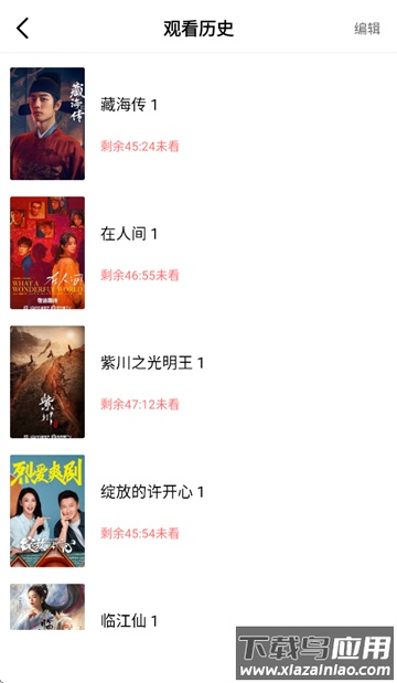 3、进入即可查看全部观看记录,也可点击编辑按钮删除历史