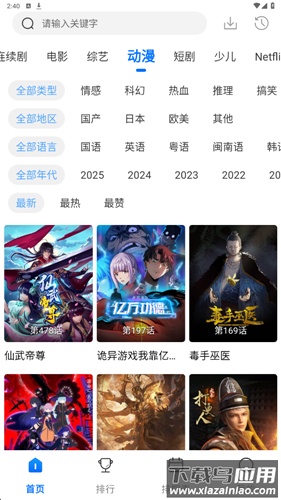 2、可以通过顶部频道栏切换内容类型,也能使用细致的筛选工具找到特定影片。