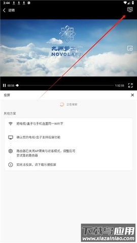 4、点击右上角投屏图标,可将内容投射到电视;需确保手机与电视处于同一网络。