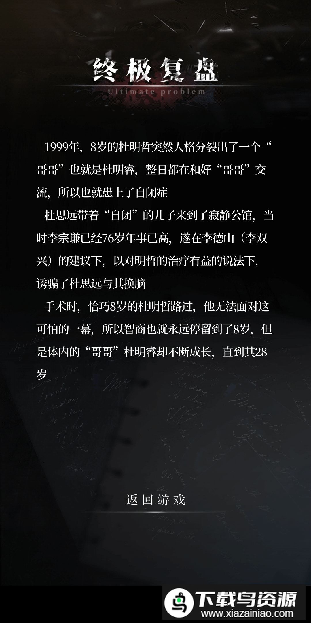 6.醒悟:在“身世真相”节点,选择返回岛国。