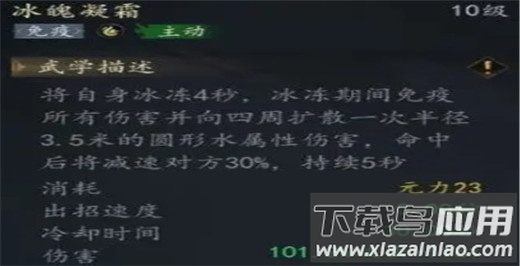 3、水系技能【寒冰护盾】可为玄门附加护盾,提升生存能力;【冰魄凝霜】可刷新护盾并回复状态,释放期间免疫所有伤害且进入【冰冻】状态,持续4秒,大幅增强自保能力。