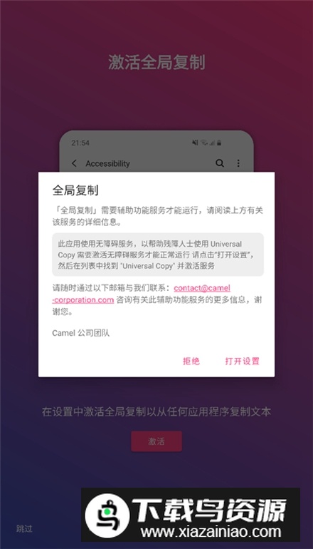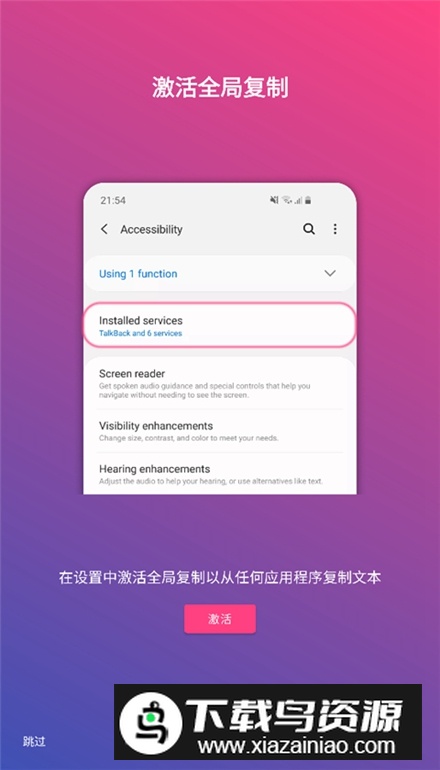 2、在系统设置中开启辅助功能服务,激活全局复制模式;