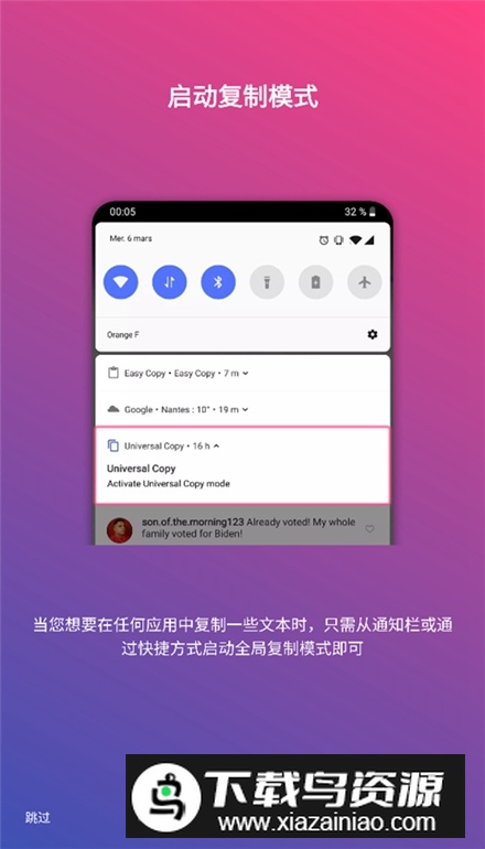 5、之后在任何应用中需要复制文本时,通过通知栏或快捷方式启动该模式即可;
