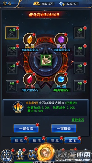 每类宝石均有多级划分,两颗同类型同等级的宝石可以合成一颗更高级的宝石。
