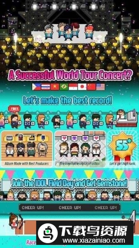 在像素艺术构筑的怀旧舞台上,你将化身经纪人,亲手培育属于自己的偶像团队。通过精心安排训练、演出与社交活动,引领她们从新人逐步成长为闪耀之星。游戏融合了高自由度的定制与丰富的管理玩法,让每位玩家都能打造独一无二的偶像旅程;喜欢的不妨在本站下载。