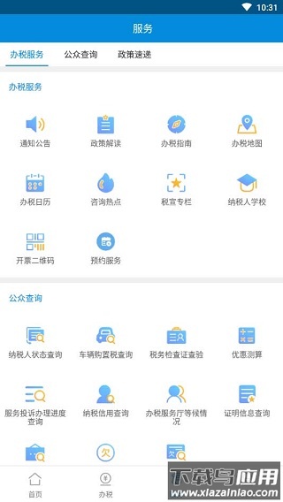 本板块分为办税服务、公众查询与政策速递三类功能。