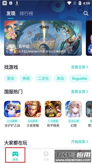 1、完成软件安装后,进入主界面,下方可见游戏、加速等多个功能入口。