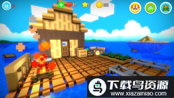 游戏伊始,你便置身于一座简易的木筏之上。通过移动并操控木筏,你可以打捞海面上的资源,逐步将这片小小的立足之地扩建为功能齐全的海上堡垒,甚至建立起属于自己的栖身之所。游戏采用高自由度的像素风格设计,在玩法上提供了类似沙盒建造的体验,但所有的冒险与创造都将在波澜起伏的海面上展开。