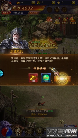 3、装备一键自动拾取,福利凭实力领取,商城物品自由兑换;