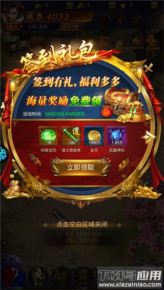 3、及时领取签到赠送的豪华礼包;