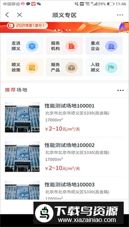 3.点击首页的顺义专区,可为顺义区的企业提供专门的政策资讯与资源服务。