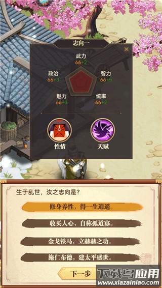6、对话结束后,选择个人志向,不同志向带来对应的属性增益;