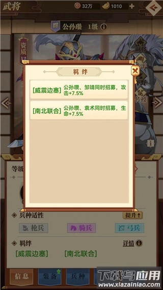 3、武将羁绊:每位武将拥有专属羁绊,激活后可提升其自身属性,品质越高羁绊数量通常越多。