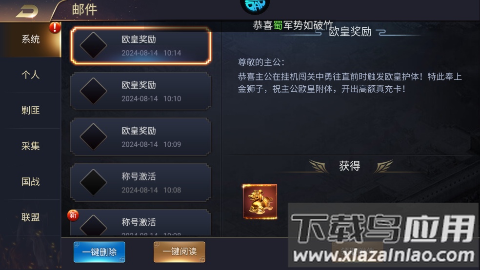 2、留意邮件中的欧皇奖励,务必前往领取。