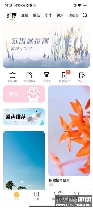 小米主题商店国际版是小米官方推出的主题美化应用,界面清新简洁,操作直观流畅。应用主界面分为首页、分类、每日精选和我的四大板块,每个部分功能明确,使用起来轻松便捷。用户可以在这里探索各式主题壁纸、手机铃声、字体与锁屏样式,无论是简约商务风、清新可爱系,还是潮流文艺范,丰富风格总能匹配你的个性喜好。