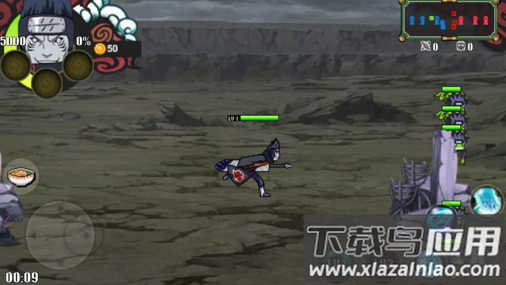 游戏采用横版过关的战斗形式,核心目标是击败对手并摧毁敌方三座建筑以赢得胜利。对于火影爱好者来说,这是一款值得尝试的作品。