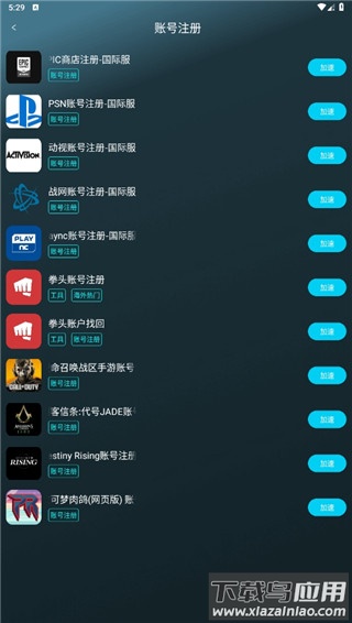 许多用户在注册EA、Epic、Steam等平台账号时,常受网络限制影响而无法成功;这款应用内置的账号注册功能可以便捷地解决此问题。用户无需访问官网即可快速完成注册流程,有效避免页面加载失败的情况。有需要的朋友可以下载体验。
