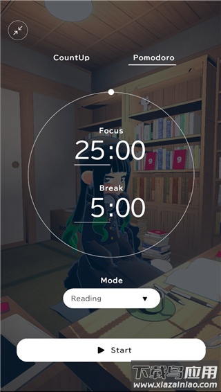 7、屏幕右下角计时器显示专注时段25分钟与休息时段5分钟。