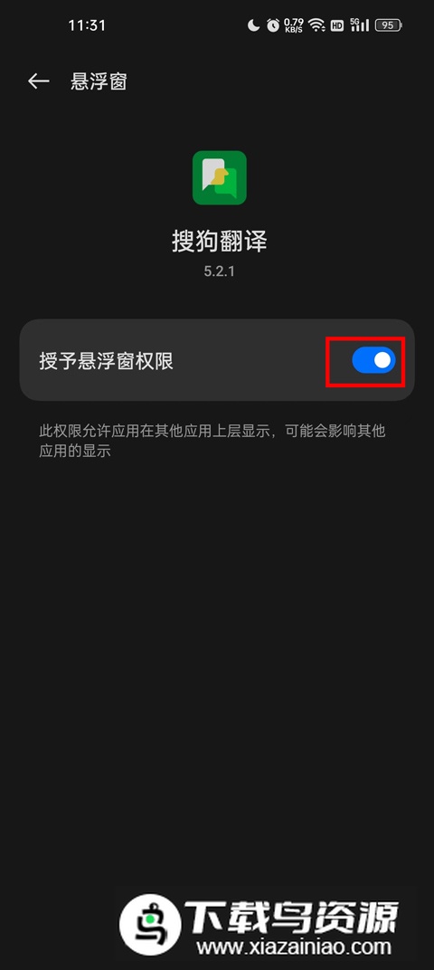 3.在手机系统设置内为搜狗翻译授予悬浮窗权限,完成开启即可使用。