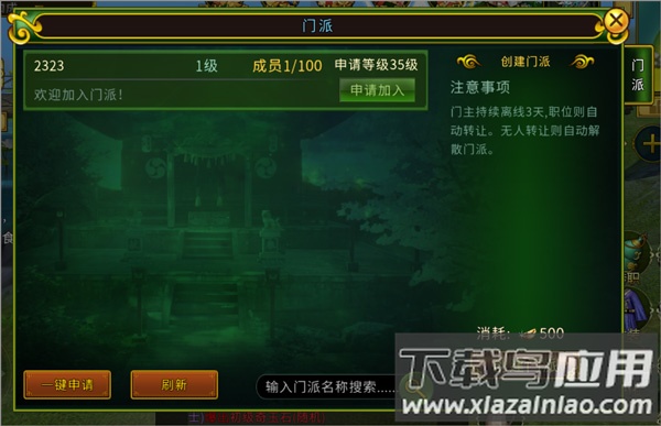 玩家等级达到35级后,即可开启门派玩法。你可以创立自己的门派担任门主,也能加入已有门派贡献力量。创立门派需角色达到【弑魔刀/至圣剑/玄武枪/穿云弓/济世者】级别,已加入其他门派的玩家无法创建新门派。