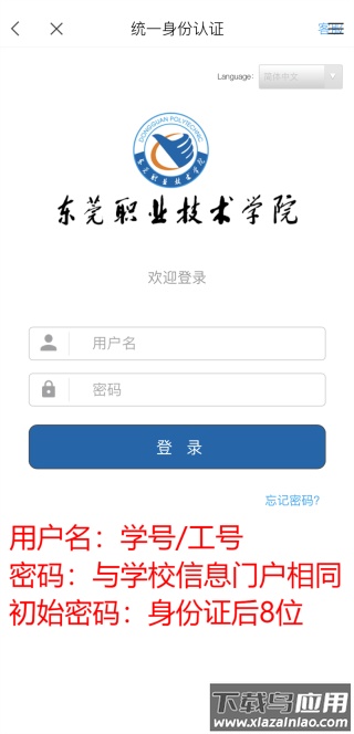 6、在学校统一认证登录界面输入学号或工号;密码与学校信息门户密码一致;首次登录后请及时修改密码并绑定手机号码。