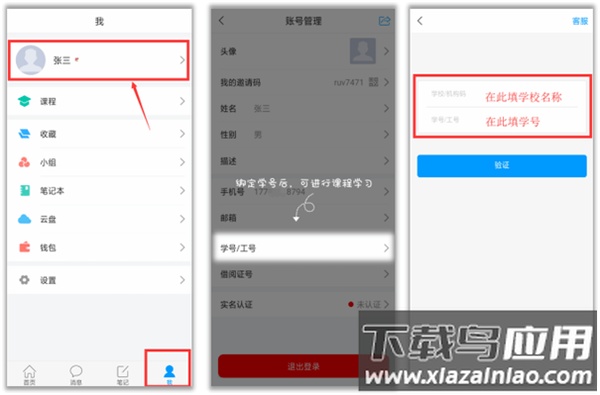 提示:若绑定遇到问题,可在“我”页面个人头像下方进入账号管理,补充绑定学号或工号。