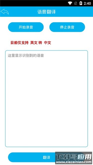 1、用户首先选择需要的翻译功能模块,例如“语音翻译”。