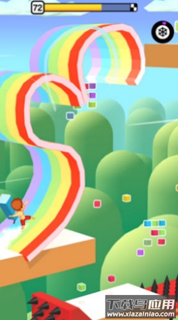 前进时收集的冰块颜色与数量不同,最终搭建出的滑梯色彩也会变化,可能出现彩虹色或单色效果。通过后续关卡获得奖励,能够解锁更多冰块种类与内容。