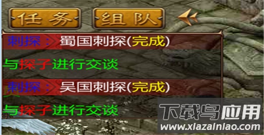 进入蜀国王城找到探子,得知“一切正常”;随后前往蜀国云石城联络密探,最后返回情报官提交任务。以同样方式也可完成对吴国的刺探。整体任务流程较为顺畅。