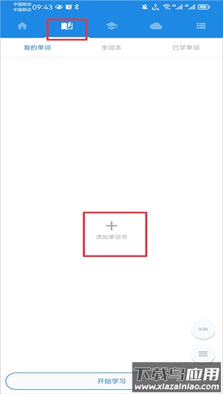 5、在单词学习界面,用户可添加自己的课本词汇,点击“添加单词书”即可导入;