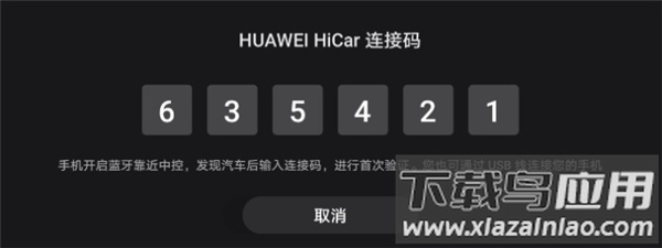 2、进入车内,点击车机屏幕上的HUAWEI HiCar图标或长按方向盘语音按键,此时屏幕将显示连接验证码。