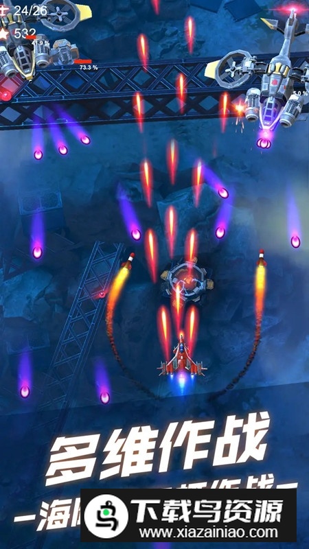 随机三选一的升级功能让战机攻击方式可自由组合,自定义战斗套路带来更丰富的爽快感受。