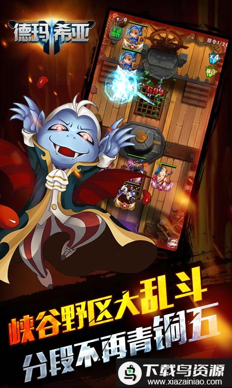 2、通过培养使英雄进阶并提升技能,挑战多种难度的游戏关卡;