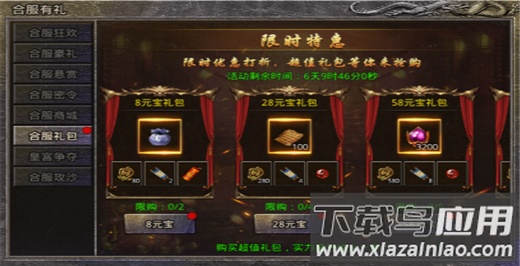 6、特定限时活动中会推出限时购买礼包,礼包内含丰富奖励,也包括含有技能书页的礼包;例如区服整合后的合服活动:
