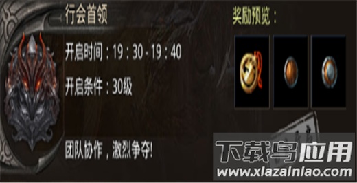 2、加入行会后可参与每日12:00与19:30的“行会首领”活动。击败行会BOSS后,系统将根据各行会对BOSS造成的伤害排名,在行会拍卖行中上架装备、材料与技能书供玩家竞拍;出价最高的玩家在竞拍结束后可获得对应物品。