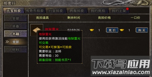 4、拍卖行中有众多玩家上架各类装备与材料,品类丰富;许多稀缺材料、装备与书籍都可能在拍卖行出现。玩家可浏览拍卖行的“书籍”分类,查看其他玩家出售的技能书,通过直接购买或竞价方式获取。