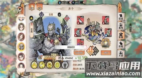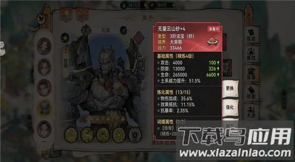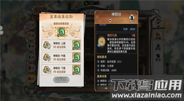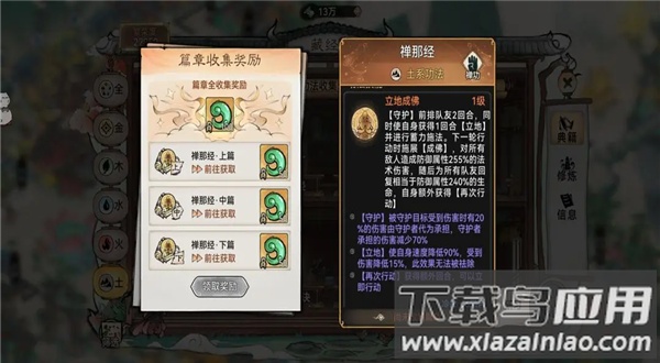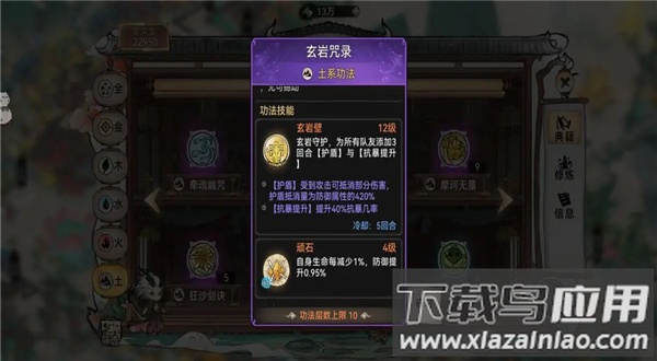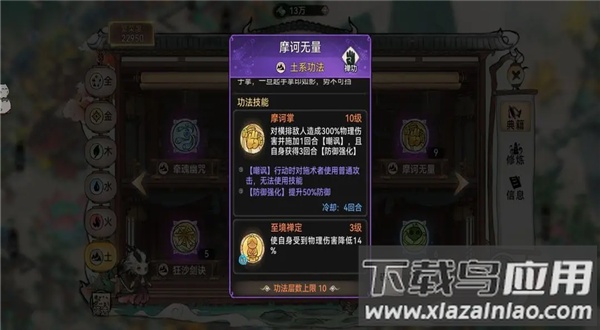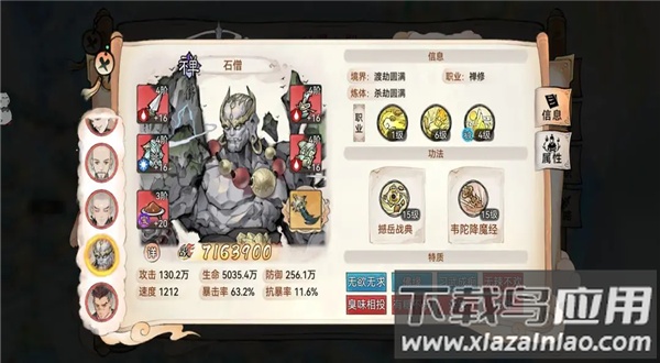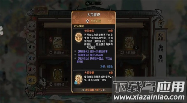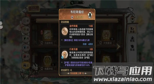 功法推荐:禅那经搭配大荒;该组合为氪金选择,功法与法宝蓄力效果结合石僧天命被动,行动结束后提升防御并可行动两次,加速石僧启动节奏。追求极致体验的玩家可直接选用。