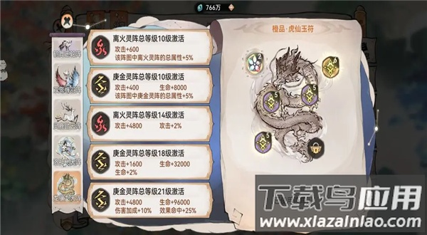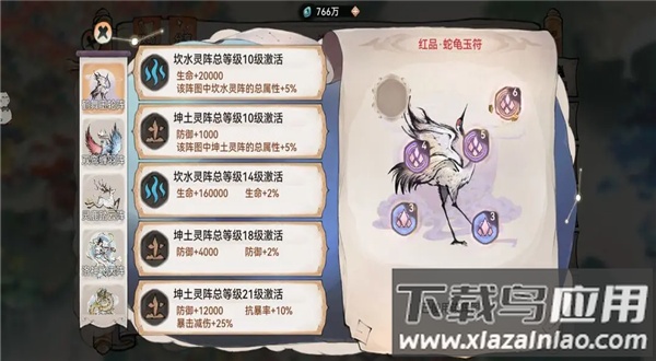 4、玉符阵图:玉符优先选择玄龟与蛇龟;建议先用一阶红色品质过渡,待符箓等级提升后更换为二阶橙色或红色品质。灵阵高级别升级耗时较长。阵图提供两种选项,如下图: