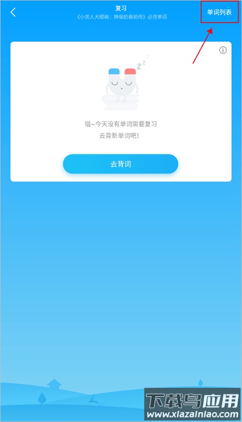 2、接着点击右上角的“单词列表”