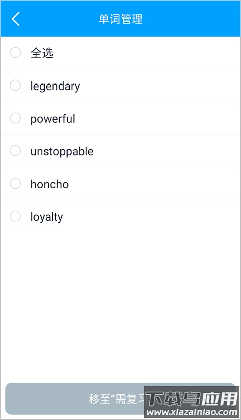 4、最后选择需要处理的单词,点击移至需复习即可重新开始背诵。