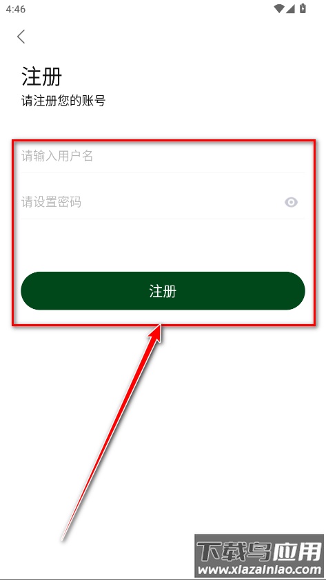 4. 在注册页面输入自定义的用户名和密码,最后点击注册即可完成。