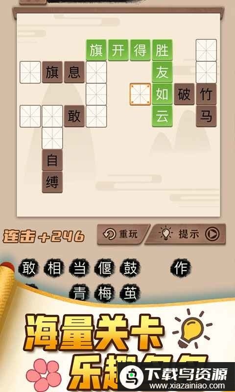 2. 关卡设计从易到难,持续挑战你的成语储备,提升语言能力;
