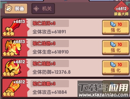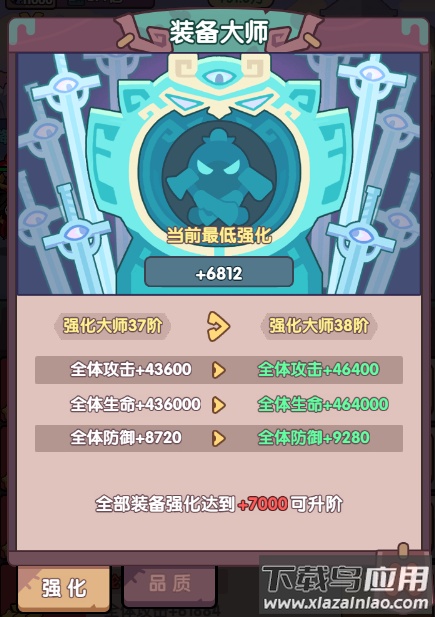 4. 当六件装备均达到一定品质阶位,还能激活装备品质大师,为全体提供百分比属性提升。