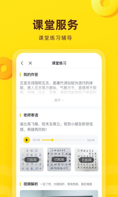 提供作业批改与学习跟踪服务;所有课程支持无限次回放,方便随时复习;生成详细学习报告,完整记录并分析学习数据,让过程清晰可见;配套教材、教辅及学习工具均免费邮寄到家,省心便捷。
