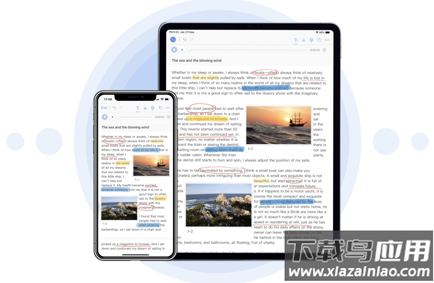 允许在文字区域进行手绘标注,方便快速突出重点;同时可选用多种精美的纸张背景,为创意表达提供充足空间。