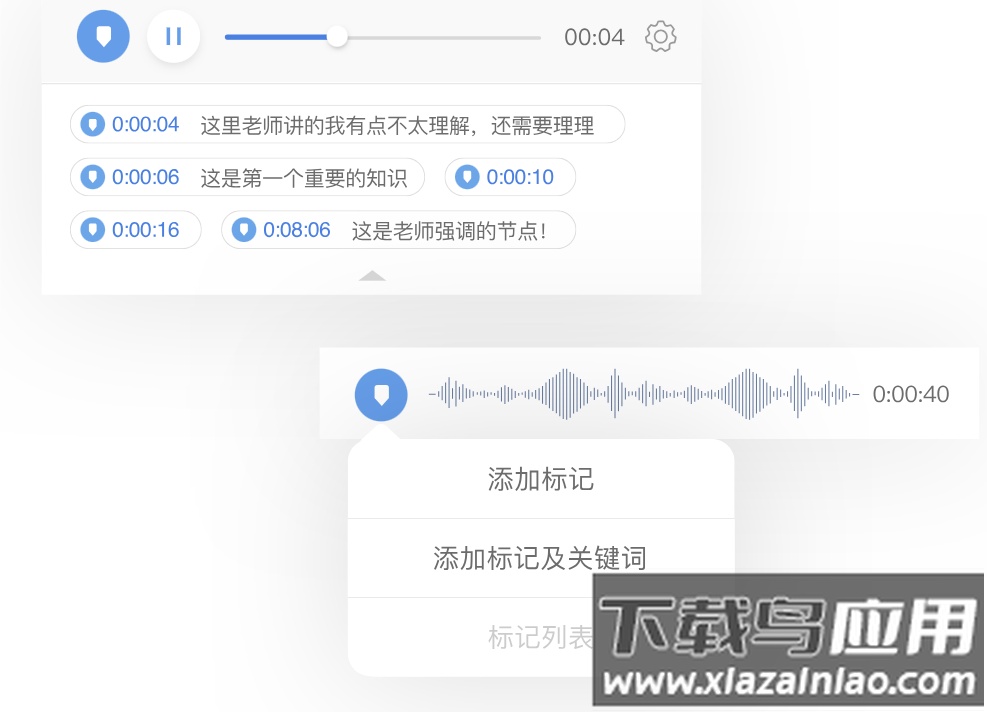 1、长时间会议录音播放稳定,课堂记录流畅无阻;2、关键内容添加标签,回放时迅速定位,节约查找时间;