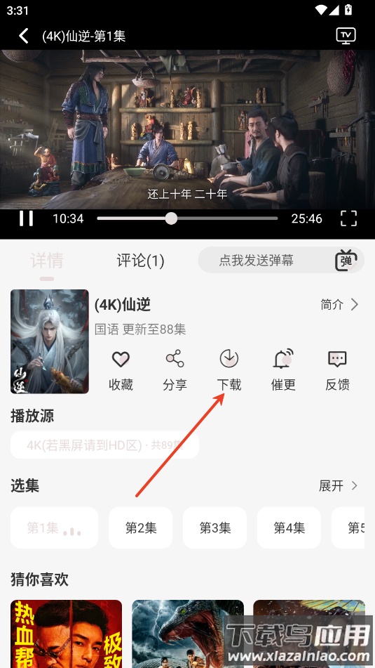 2. 在播放页面找到并点击下载按钮。
