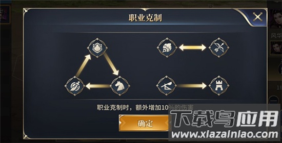 2.步兵、骑兵、盾兵三者相互克制,术士与弓兵相互克制,职业克制可提升10%造成的伤害;