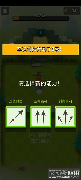 5、每次升级或开启宝箱后,会随机出现三个技能供玩家选择其一,技能能为攻击附加特殊效果,提升输出能力;